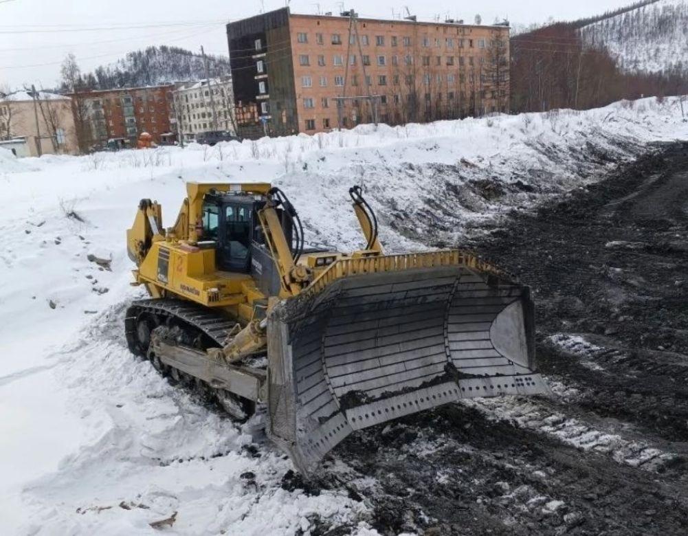 Из-за резкого потепления и активного таяния снега медлить нельзя, поэтому экскаваторы и бульдозеры работают в режиме 24/7.