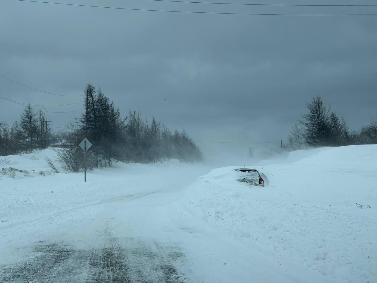 За прошедшие сутки в Магадане выпала почти двухмесячная норма снега — это последствия циклона со стороны Японского моря.