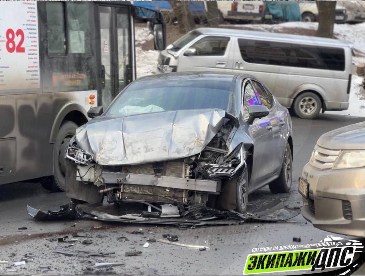 Машина потеряла управление и на полном ходу врезалась в металлическое ограждение (леера) в районе первого съезда.