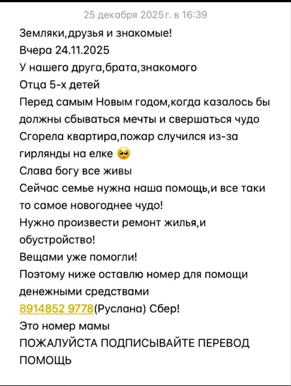Если вы хотите помочь многодетной семье, можете сделать перевод по номеру на Сбербанк: