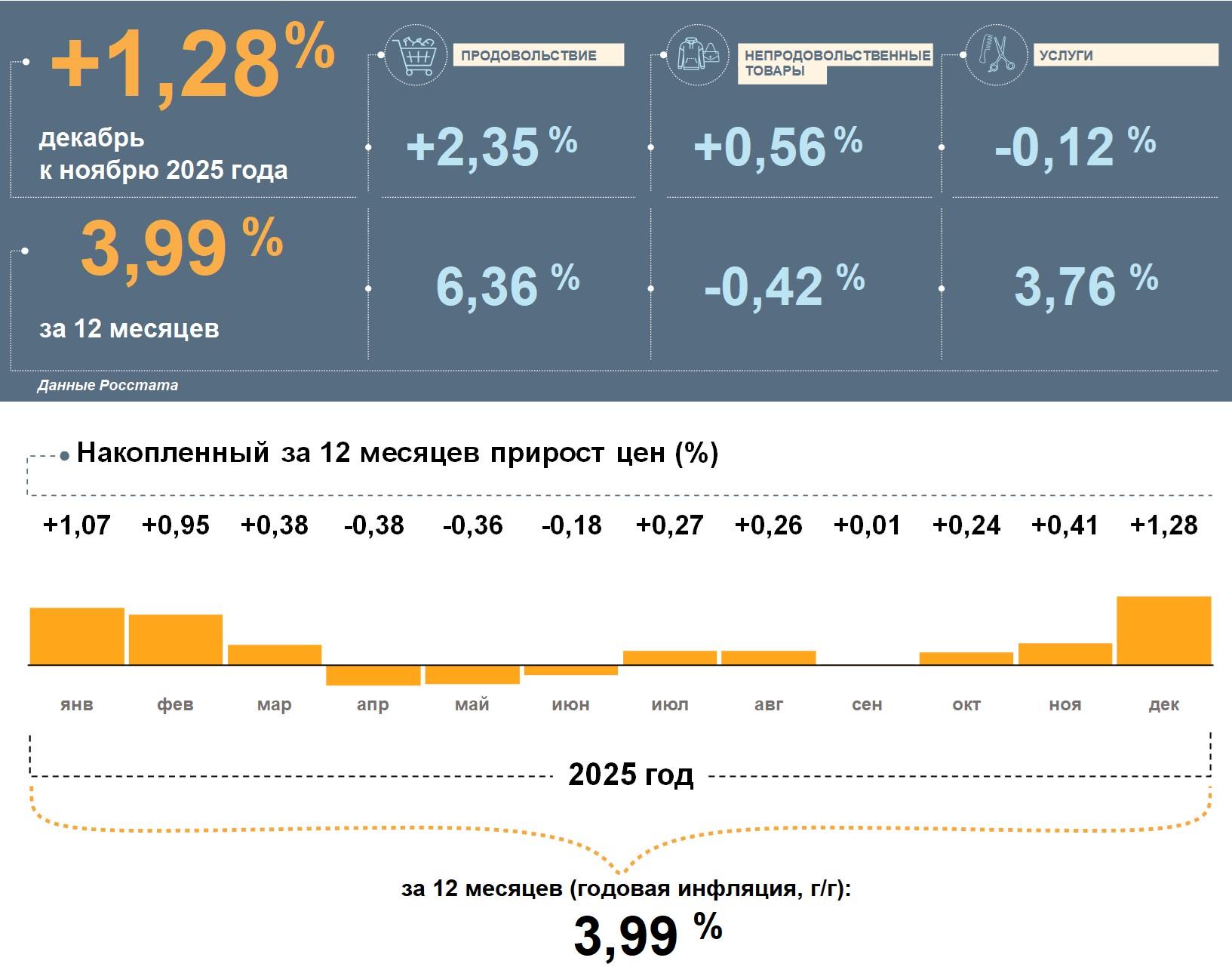 Согласно данным Росстата за декабрь 2025 года, годовая инфляция на Чукотке составила всего 3,99%, что заметно ниже общероссийского показателя в 5,59%.