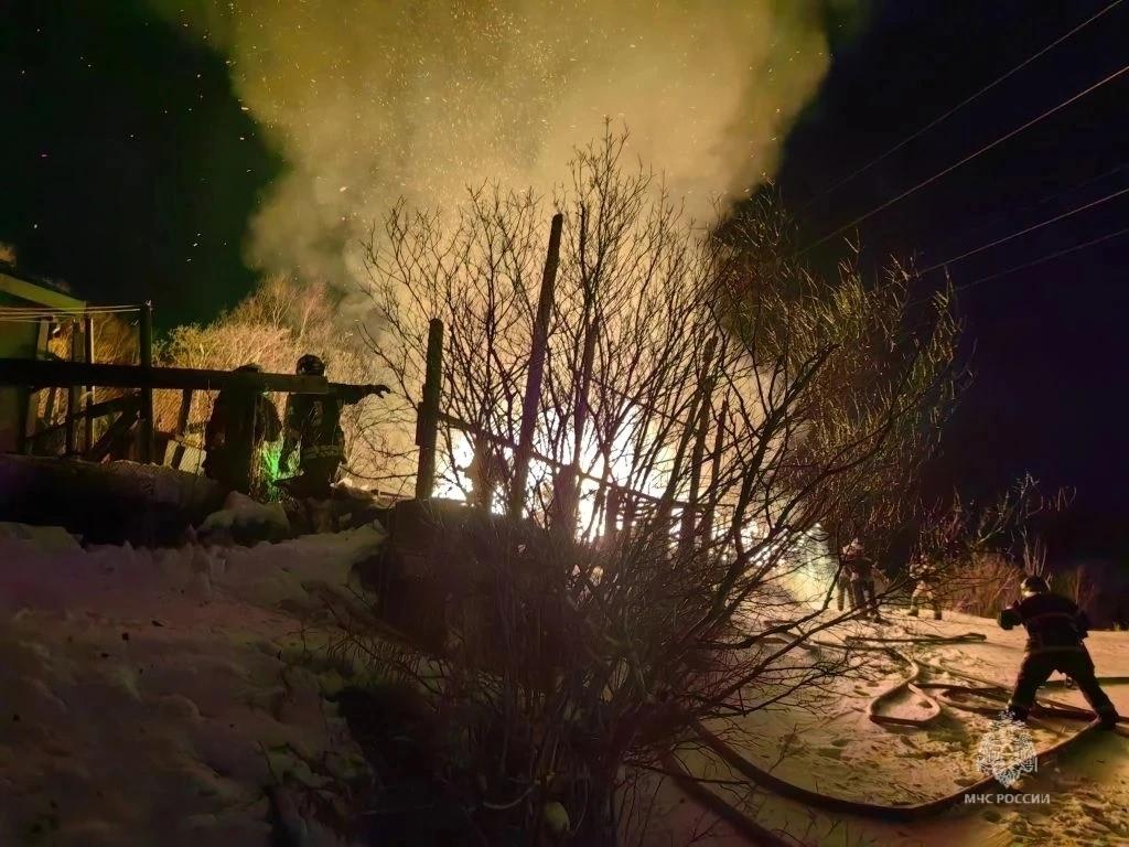 Пожарные приехали через семь минут после вызова — деревянное строение к тому моменту горело по всей площади.