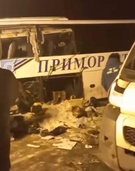На повороте его прицеп вынесло на встречную полосу, где он столкнулся с пассажирским автобусом King Long, следовавшим из поселка Краскино в сторону Раздольного.